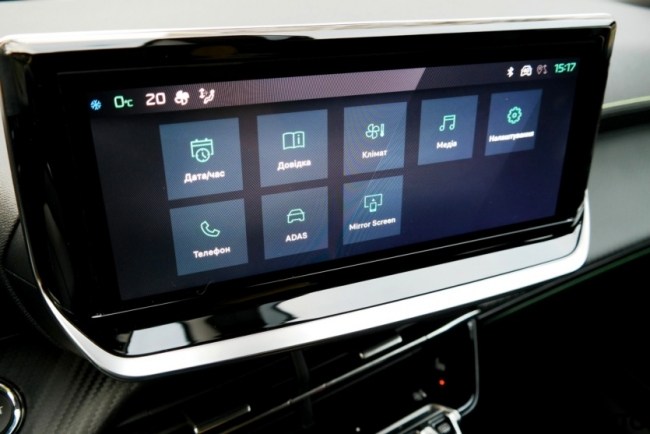 Це я до того, що салон Peugeot 2008 від самого початку вийшов дуже вдалим. То ж його оновлення потребувало не змін, а саме оновлення (вибачте за каламбур) - тобто, використання більш сучасних технічних рішень, що з'явились за останні роки в асортименті Peugeot. Йдеться про 10-дюймовий дисплей та новітню мультимедійну систему, яка дозволяє вільно налаштовувати сторінки та формувати улюблені кнопки-блоки доступу до потрібних функцій. Серед інших змін можна відзначити різноманітні дрібнички: новий джойстик «автомату» або інше компонування кнопок на передній панелі під дисплеєм.